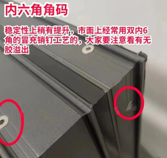 普通斷橋鋁橫梁、立柱連接的時(shí)候用螺絲加鋼片,而系統(tǒng)窗會(huì)采用注膠的工藝,往型材和角碼之間填充組角膠。